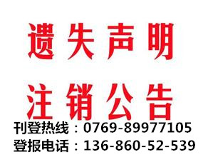 東莞日報登報,東莞各鎮街遺失聲明公告啟事,網上辦理平臺:登報網址:http://www.dgdbpt